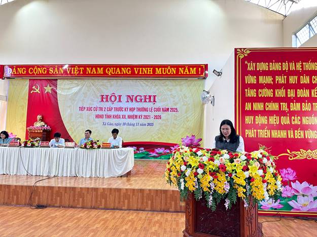 Tại buổi tiếp xúc, đại biểu Võ Thị Bảo Ngân thông tin đến cử tri về kết quả hoạt động của HĐND tỉnh từ ngày sáp nhập tỉnh đến nay; dự kiến nội dung, chương trình, thời gian tổ chức kỳ họp thường lệ cuối năm 2025, HĐND tỉnh khóa XII; kết quả hoạt động của đại biểu HĐND trong thời gian qua.