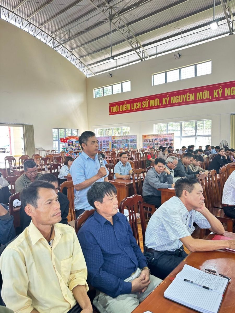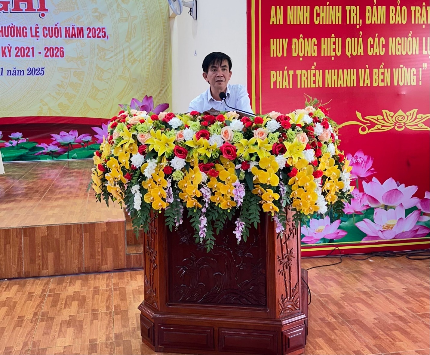 Đồng chí Nguyễn Hữu Sung – Bí thư Đảng ủy, Chủ tịch HĐND xã phát biểu tại Hội nghị