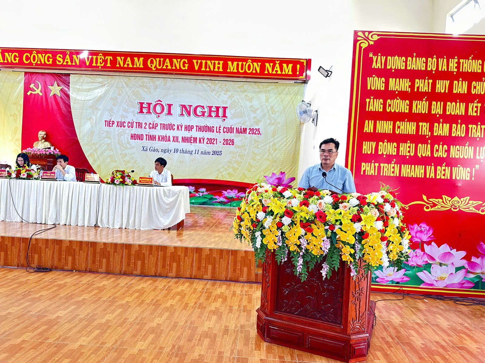 Cử tri xã Gào bày tỏ phấn khởi trước những kết quả nổi bật trong phát triển kinh tế - xã hội của tỉnh thời gian qua, nhất trí với dự kiến nội dung, chương trình kỳ họp thường lệ cuối năm 2025 của HĐND tỉnh. Đồng thời kiến nghị UBND tỉnh, các cơ quan chức năng một số vấn đề như: cử tri mong muốn các cấp, các ngành liên quan quan tâm, hỗ trợ cây trồng, con giống, tạo điều kiện cho người dân phát triển kinh tế; sớm giải quyết thủ tục cần thiết nhằm cấp đất ở cho người dân địa phương, hỗ trợ trang thiết bị y tế, đa dạng chủng loại thuốc điều trị cho trạm y tế xã, bảo đảm phục vụ tốt hơn nhu cầu khám, chữa bệnh cho Nhân dân, hạn chế tình trạng người dân phải lên tuyến trên.