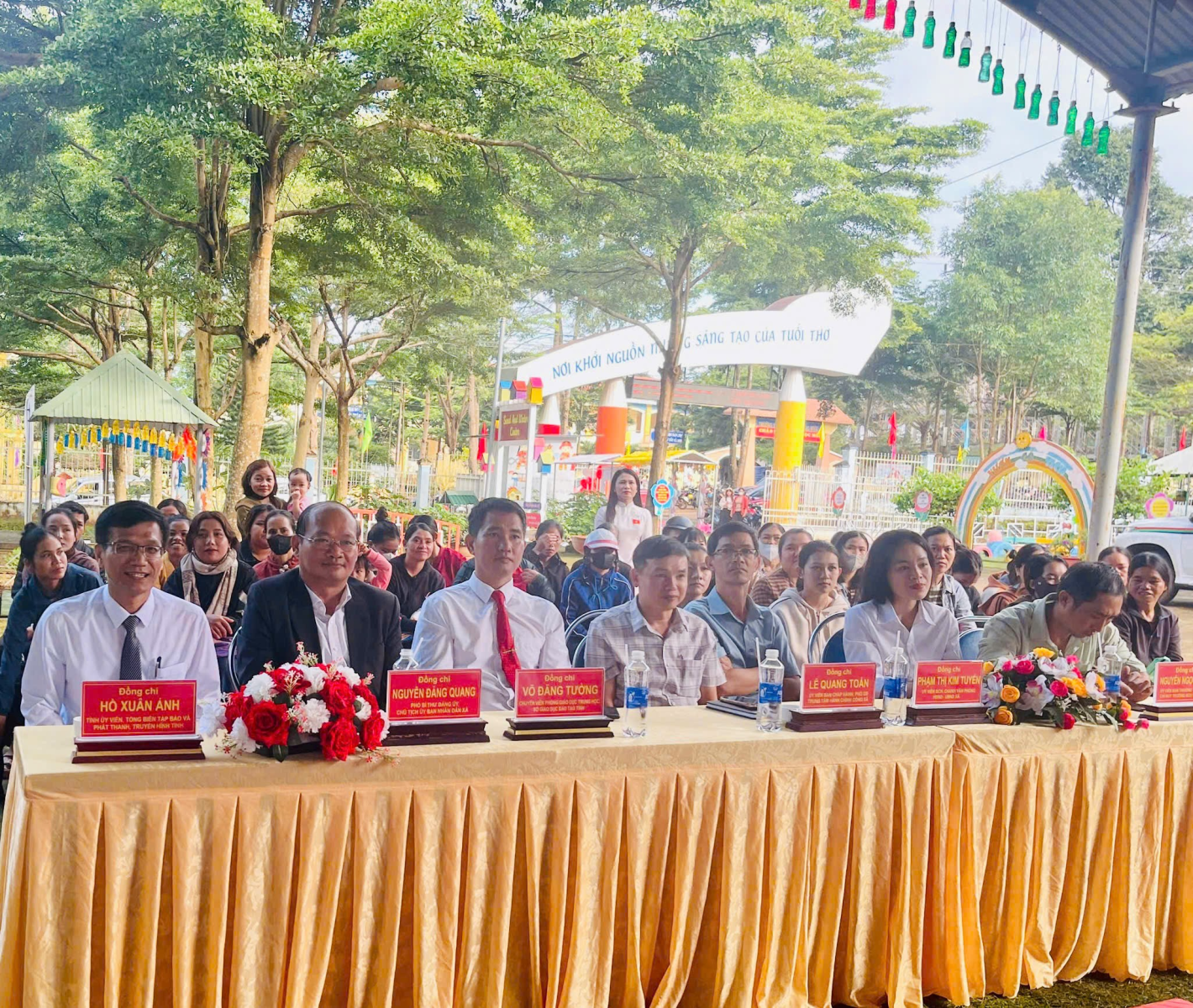 Về dự lễ khai giảng trên địa bàn xã có đồng chí Hồ Xuân Ánh-Tỉnh ủy viên, Tổng biên tập báo và phát thanh, truyền hình tỉnh; đại diện lãnh đạo Đảng ủy-HĐND-UBND-UBMTTQVN xã cùng tập thể cán bộ, giáo viên và học sinh 07 trường học