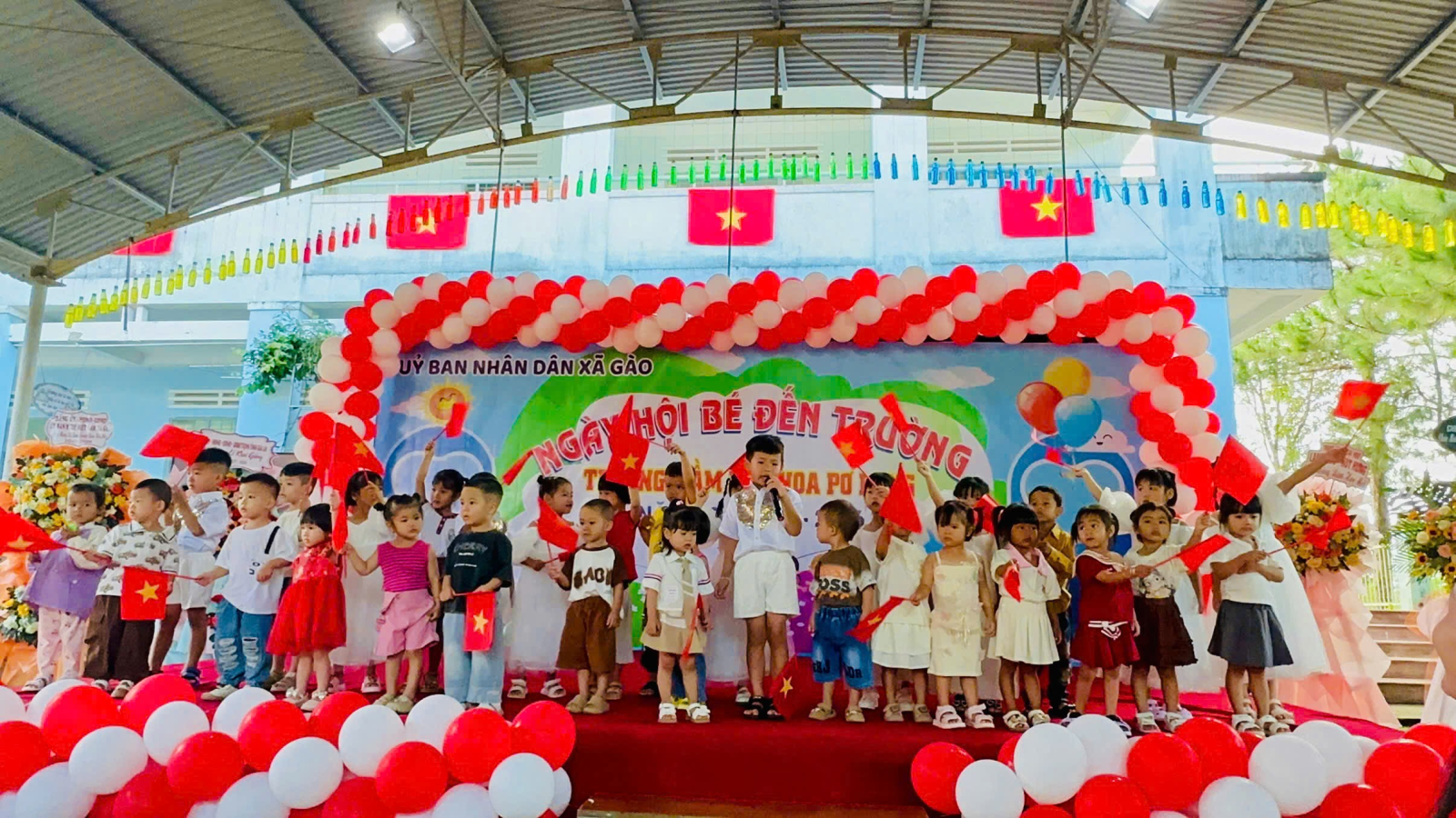Nụ cười rạng rỡ, ánh mắt đầy niềm vui của các con, Trường Mần Non Hao Pơ Lang, xã Gào trong ngày khai trường